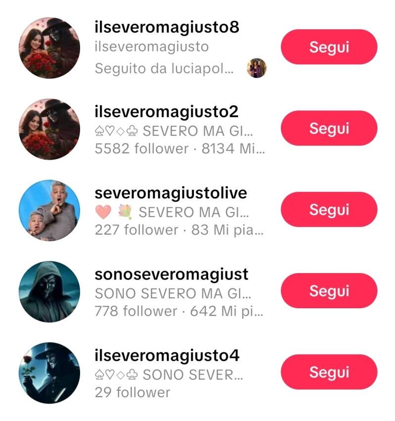 Il profilo “Severo Ma Giusto” appare infatti come un narcisista che, celato dietro una maschera, usa la sua presenza social non per contrastare il bullismo ma per alimentarlo. Durante diverse dirette streaming, sono state riscontrate condotte contrarie al dichiarato impegno anti-violenza: il gestore ha creato più profili secondari utilizzati proprio per attaccare e diffamare altre persone, provocando tensioni e paure tra la community. Un sistema ben orchestrato per mantenere il controllo e seminare discordia.